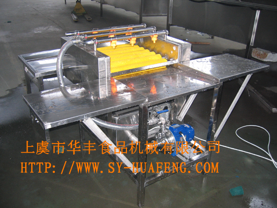 概述:粽子作為我國的傳統食品,深受廣大消費者的喜愛。我公司結合五芳齋集團有限公司共同設計、研發制造全自動粽子生產線。 1、粽葉清洗機: 概述:整機除水泵外均采用SUS304不銹鋼材料制作;能夠一次將夾雜在大米中的石子類比重較重的雜質及米糠類比重較輕類雜質從大米中分離出去;大大提高清洗效率,節約人工,從而降低生產成本。 3、拌米機; |